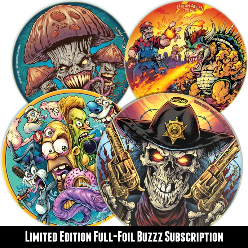 Limited Edition Foil Discraft Buzzz discs released monthly by Artist Brian Allen